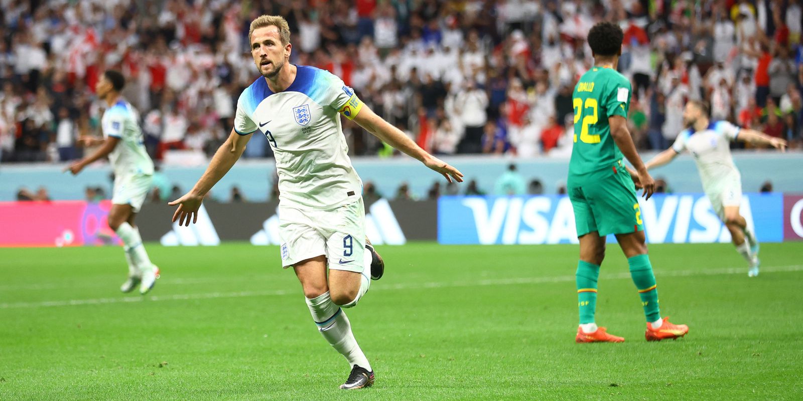 No entanto, pouco depois a Inglaterra deu início a uma faixa do jogo que se mostrou decisiva. Aos 38, Bellingham recebeu belo passe de Kane por dentro da defesa senegalesa, avançou pela esquerda e cruzou rasteiro para Jordan Henderson, que apareceu de surpresa na área para completar de primeira e marcar.