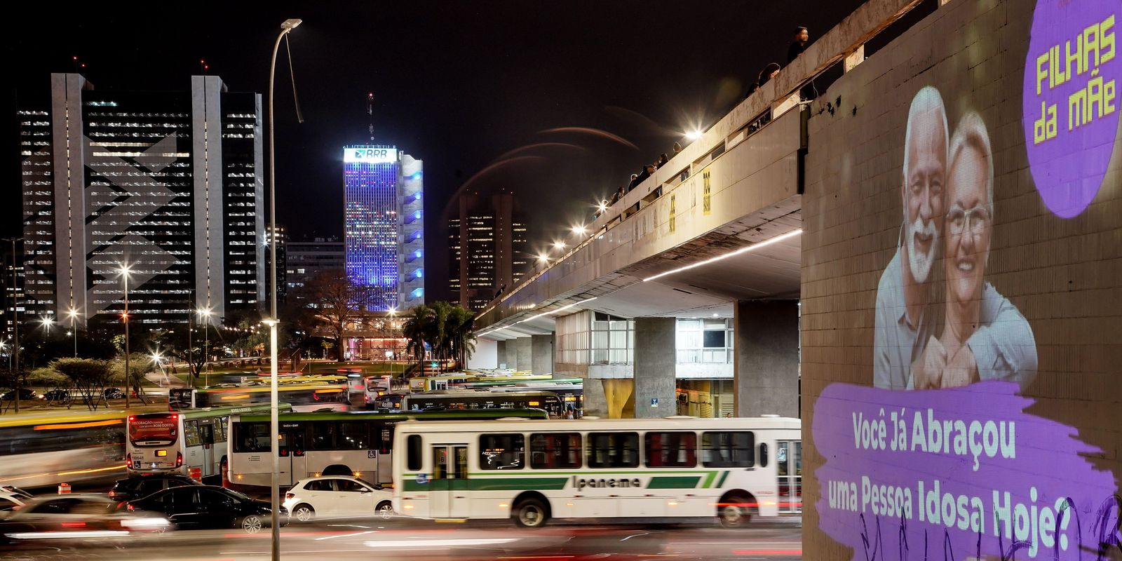 Com fotos e frases em defesa dos idosos, as imagens foram projetadas entre o Teatro Nacional e a Rodoviária de Brasília, no Palácio do Buriti, sede do governo distrital, e na Câmara Legislativa do Distrito Federal.