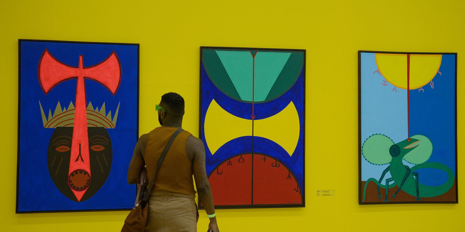“A pintura de Abdias não tem uma linearidade e acessa vários períodos da vida dele, tanto quando ele pinta no exílio quanto quando retorna para o Brasil. Mas, quando ele retorna, envolve-se mais com a política, torna-se deputado e depois senador, cria o Ipeafro. E a produção dele, enquanto artista, tem uma baixa. É no exílio em que ele produz mais”, explica o curador, que, apesar disso, reuniu também obras das décadas de 1980 e 1990 na exposição, que continuará na Galeria Mata de Inhotim até 6 de agosto deste ano.